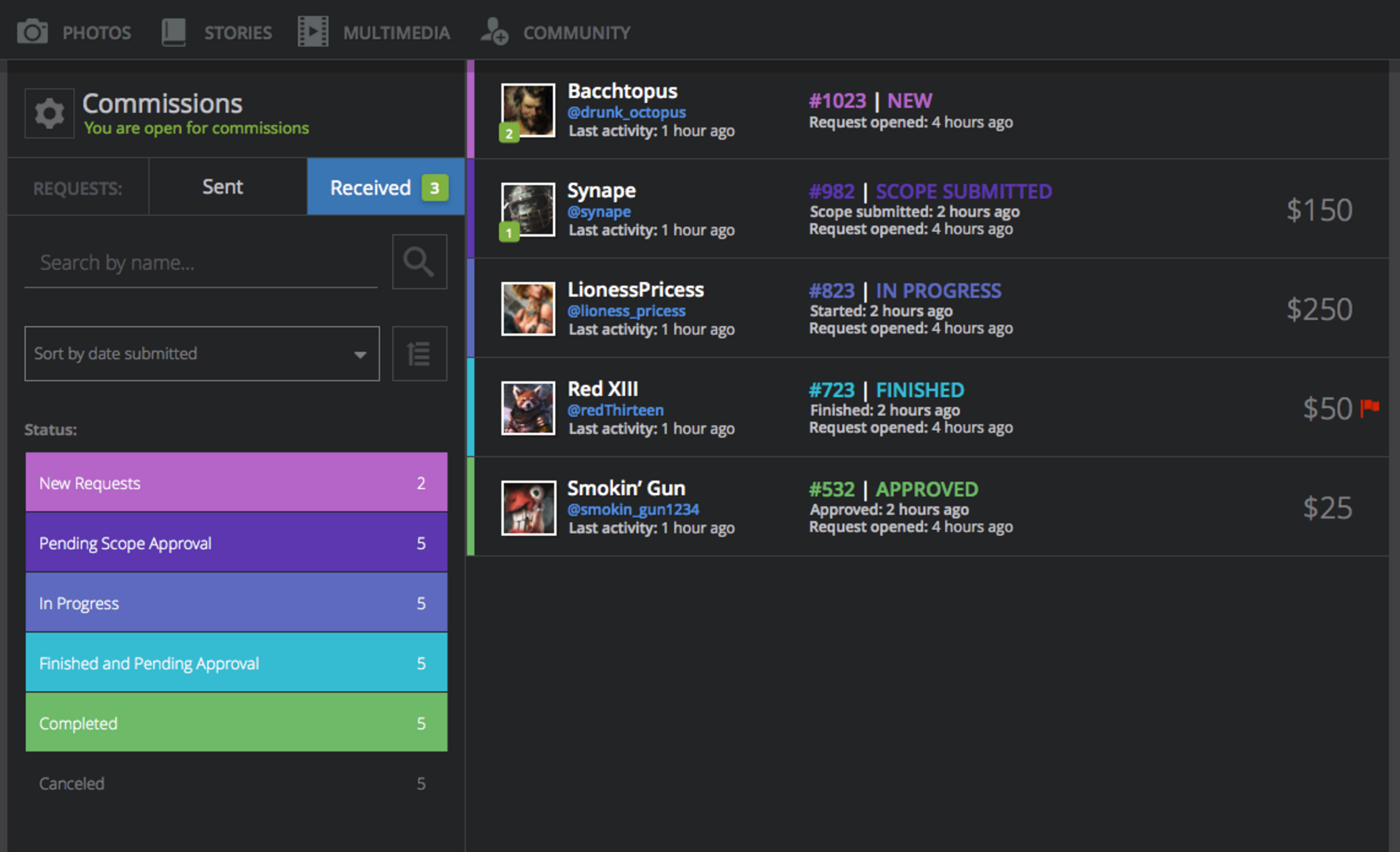 - There’s currently no way to see who faved or promoted a submission, or how many views it has.
