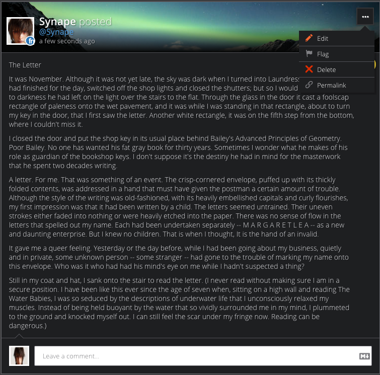 - Posts are revamped to include permalinks for sharing, can be set as adult, are now viewable on their own pages and linked from the newsfeed, and can be blocked content settings.