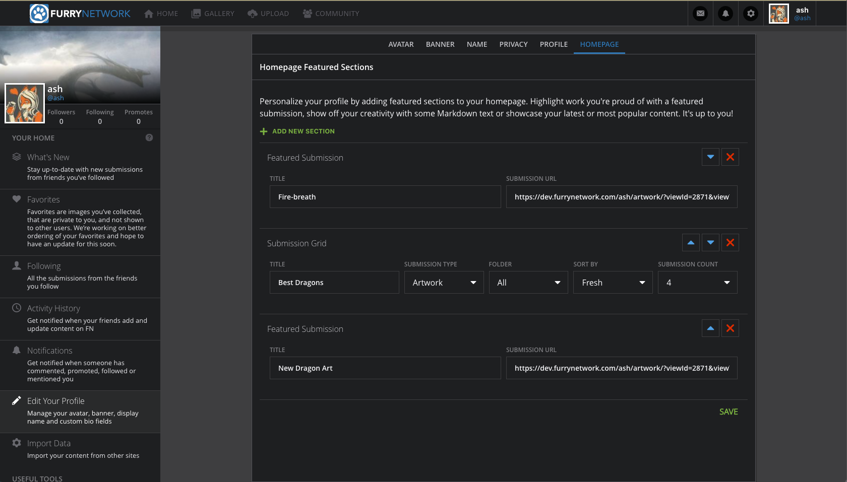 - Improving the activity feed. Right now, the Activity History tab on Furry Network will show you what people have posted, commented on, and promoted. However, it’s not easy to always see what’s happening there. We want to make this closer to a timeline that you’d see on Twitter or Tumblr – allow you to see submissions, share them, and make a comment all from the same page.