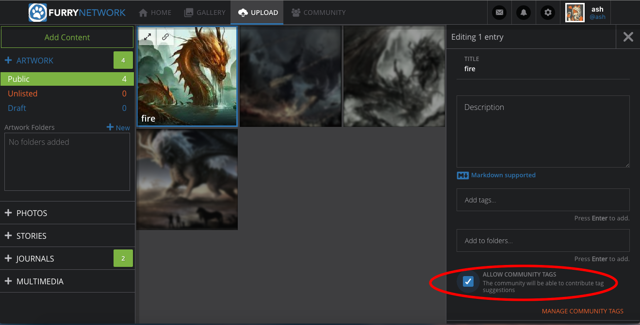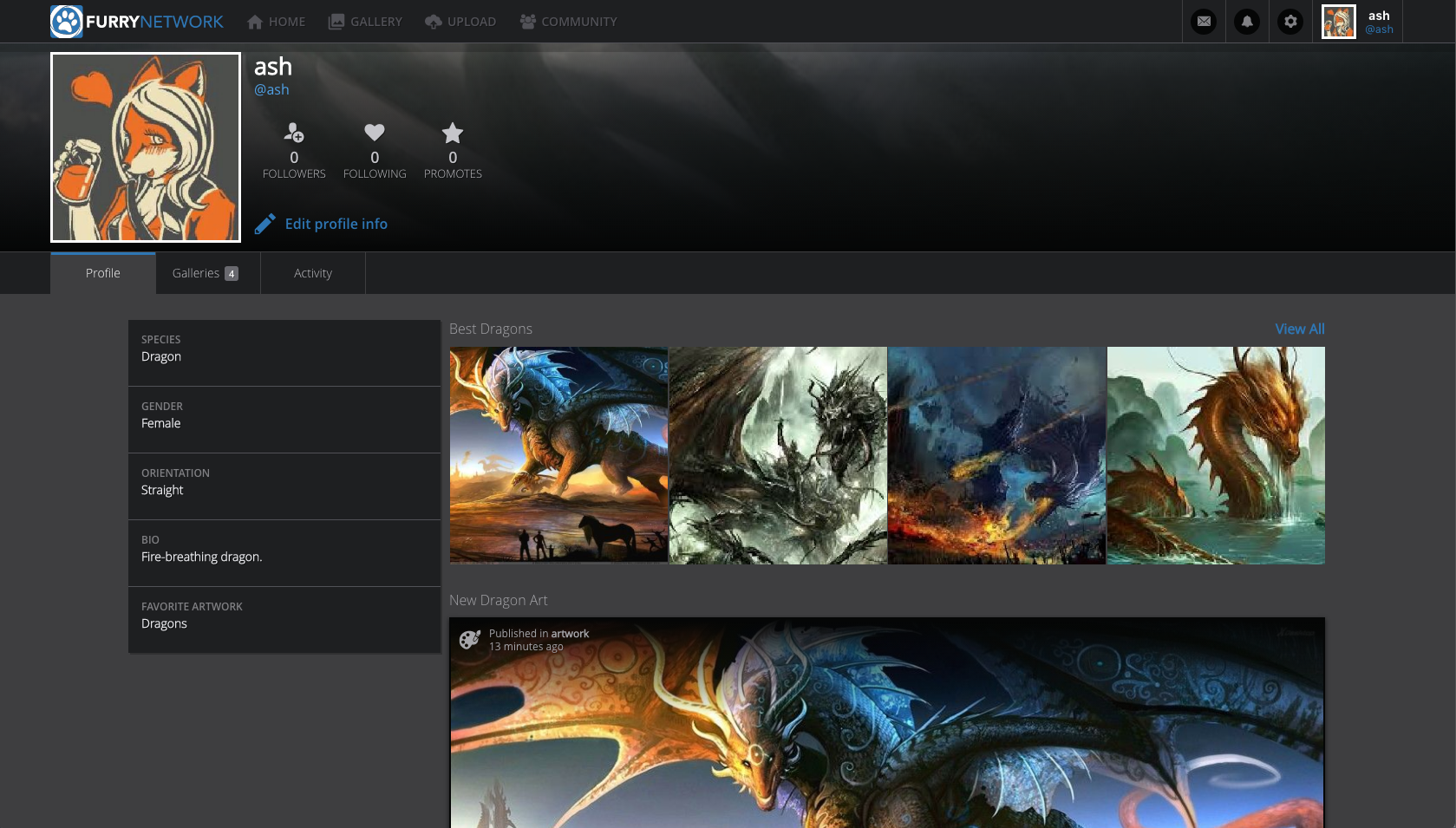 Furry Network works to help others find like-minded individuals while eliminating the feeling of isolation. Right now, selections from galleries can be shared and commented on, and furries on the site can interact with comments on submissions. In addition, we have a Discord server that’s grown in activity, and we’ve had the chance to start forming some friendships.